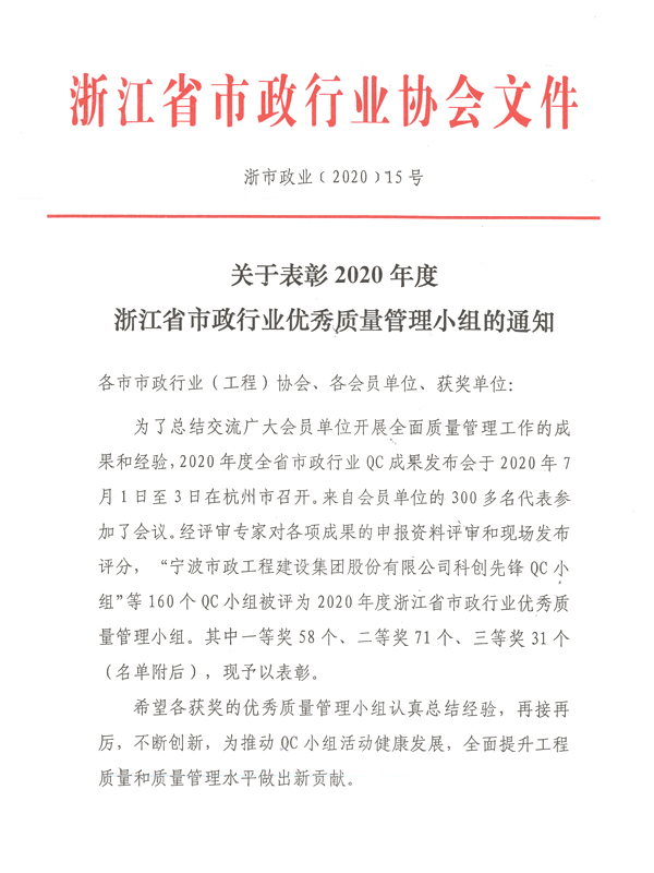 2020 Xianju Hebu bridge Zhejiang Municipal Excellent QC second prize