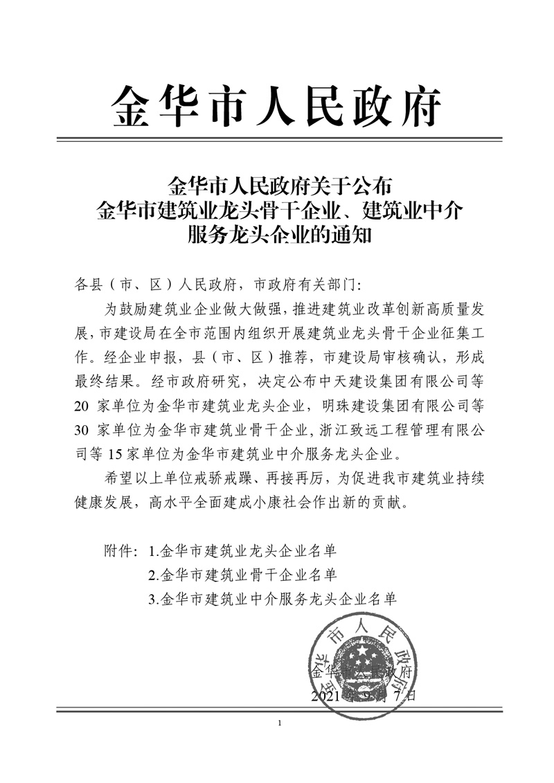 金華市建筑業龍頭骨干企業、建筑業中企服務龍頭企業的通知