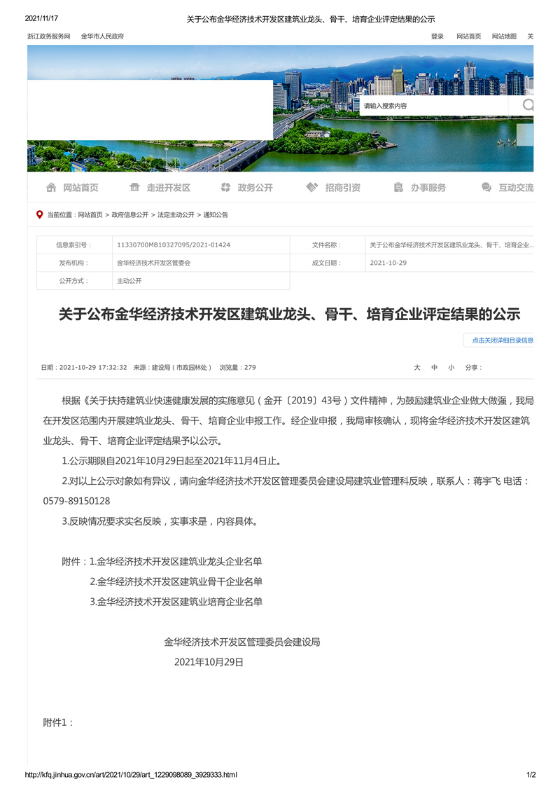 下一頁:關于公布金華經濟技術開發區建筑業龍頭企業、骨干企業、培育企業認定結果的通知