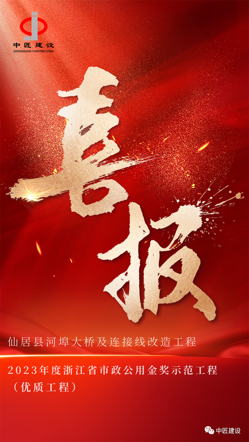 近日,中匠園林建設(shè)有限公司(以下簡(jiǎn)稱“中匠建設(shè)”)承建的仙居縣河埠大橋及連接線改造工程,被浙江省市政行業(yè)協(xié)會(huì)高度認(rèn)可,榮獲2023年度浙江省市政公用金獎(jiǎng)示范工程(優(yōu)質(zhì)工程)榮譽(yù)。