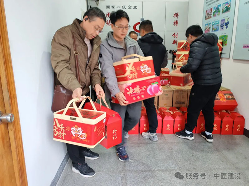 中匠建設衷心感謝每一位員工的辛勤工作與無私奉獻。是你們的努力,鑄就了公司的輝煌;是你們的笑容,點亮了公司的每一個角落。愿這份年貨能帶給你們及家人一個溫馨、快樂的春節,讓我們攜手并進,共創更加美好的明天!